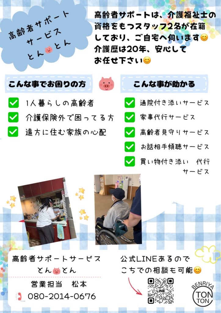 ホームページはこちら:便利屋とんとん|介護福祉士が提供する安心の高齢者生活サポート 旭川市